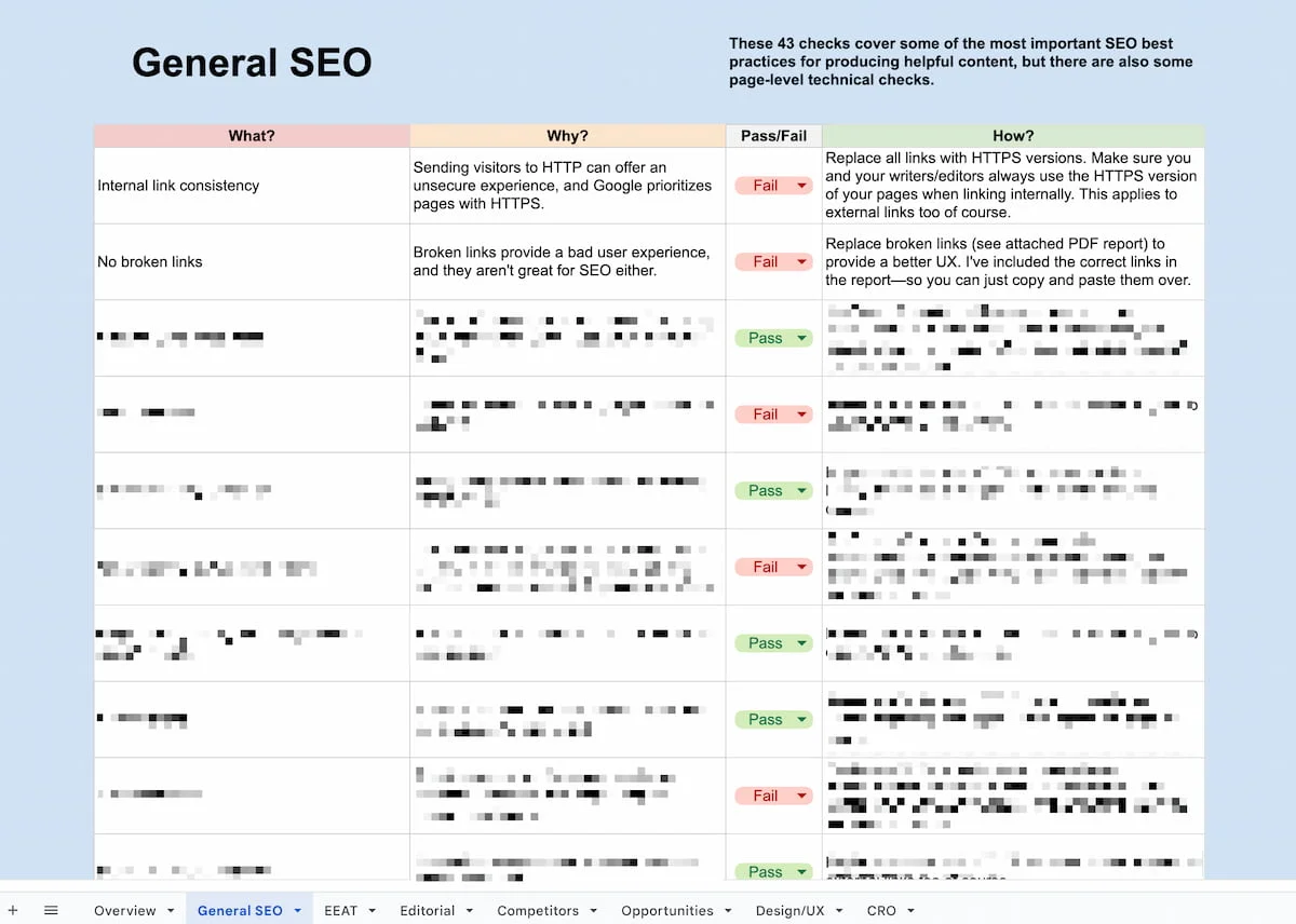 My SEO content audits cover every aspect of what makes a piece of content: